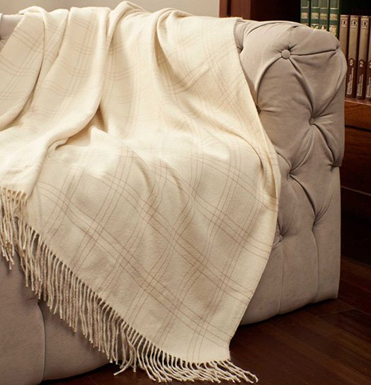The baby alpaca blanket Jetlag is available in neutral tones. Their understated elegance makes them versatile additions to any interior style, whether modern, rustic or traditional.