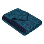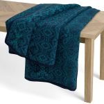 A cozy, soft double-knit blanket with an Inca pattern, available in petrol blue.